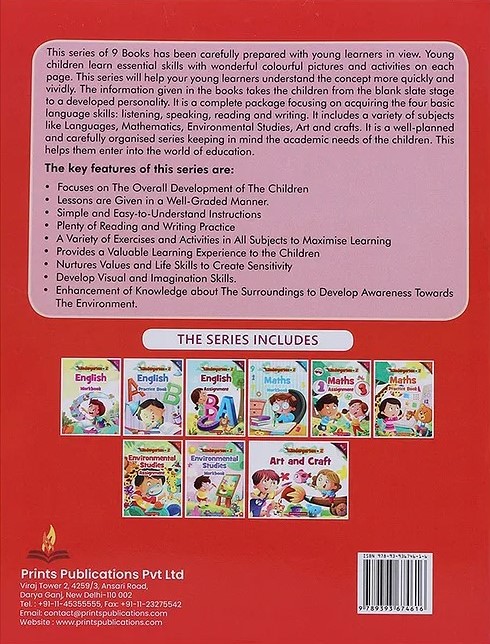 This series of 9 Books has been carefully prepared with young learners in view. Young children learn essential skills with wonderful colourful pictures and activities on each page. This series will help your young learners understand the concept more quickly and vividly. The information given in the books takes the children from the blank slate stage to a developed personality. It is a complete package focusing on acquiring the four basic language skills: listening, speaking, reading and writing. It includes a variety of subjects like Languages, Mathematics, Environmental Studies, Art and crafts. It is a well-planned and carefully organised series keeping in mind the academic needs of the children. This helps them enter into the world of education.