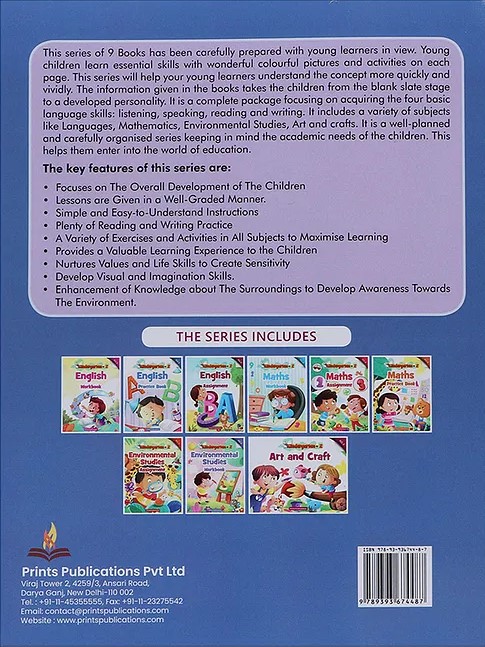 This series of 9 Books has been carefully prepared with young learners in view. Young children learn essential skills with wonderful colourful pictures and activities on each page. This series will help your young learners understand the concept more quickly and vividly. The information given in the books takes the children from the blank slate stage to a developed personality. It is a complete package focusing on acquiring the four basic language skills: listening, speaking, reading and writing. It includes a variety of subjects like Languages, Mathematics, Environmental Studies, Art and crafts. It is a well-planned and carefully organised series keeping in mind the academic needs of the children. This helps them enter into the world of education.