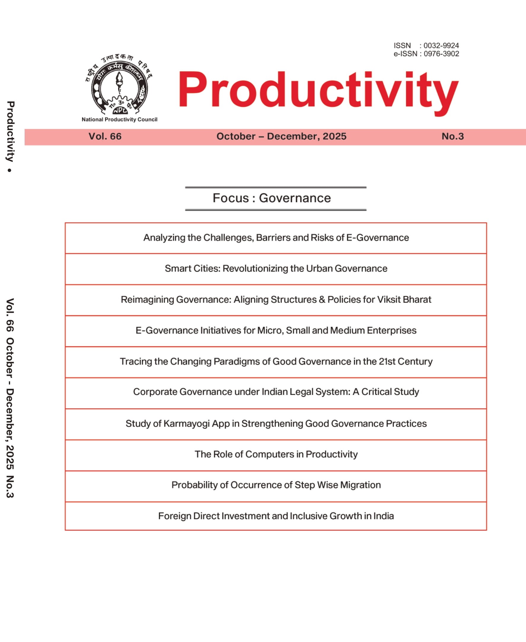 Productivity is the principal journal of the National Productivity Council of India. The Journal aims at disseminating information on concepts of and data on productivity and its growth in India and elsewhere. It also aims at disseminating knowledge on techniques and methods of productivity improvement through effective management of all types of resources. Thus contribution from a large spectrum of disciplines are accepted for publication.Only those manuscripts that present original results will be accepted of the publication in the Journal.The managerial/policy implications of the study should be highlighted separately towards the end of the paper.